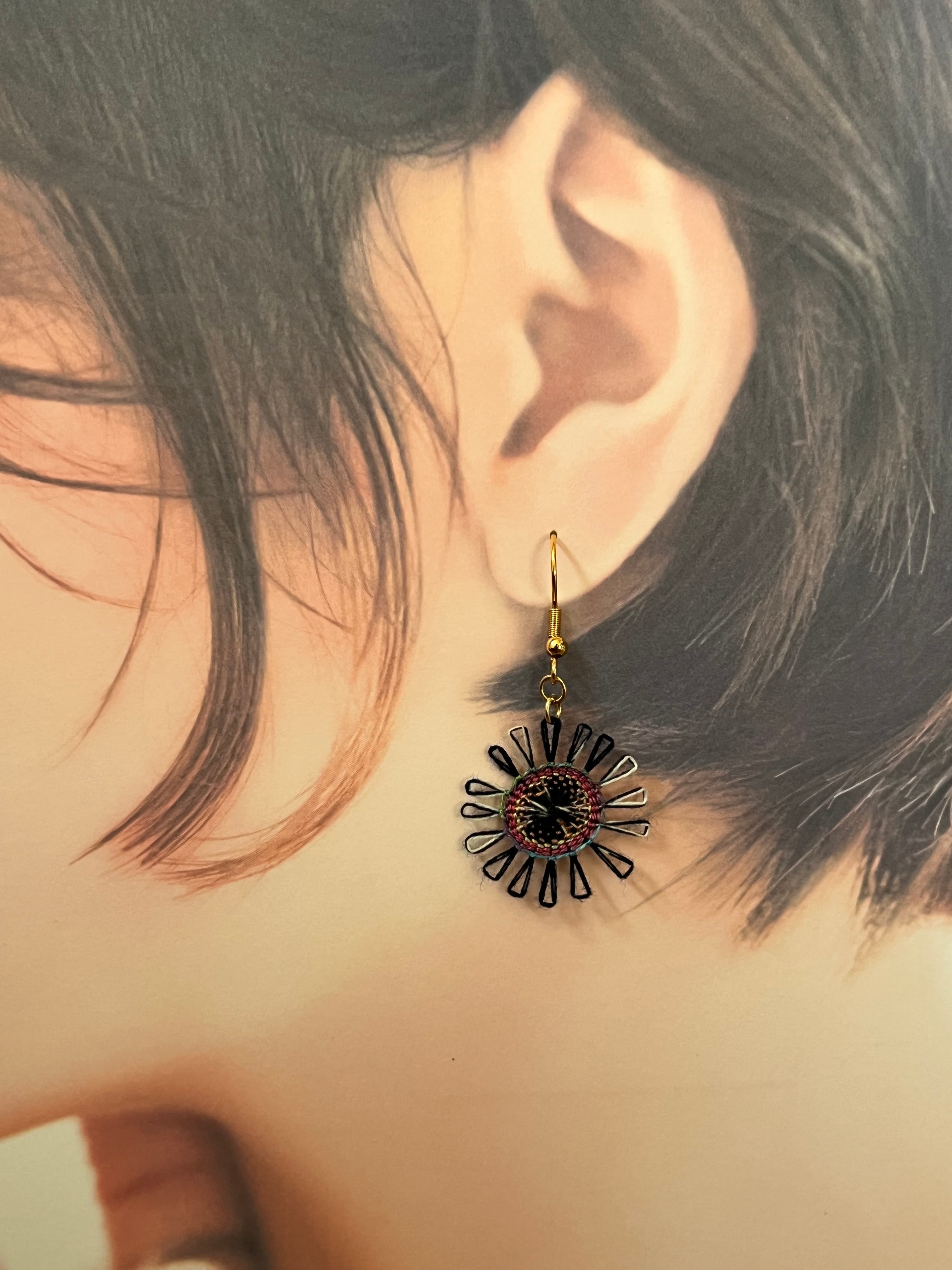 職人さんから譲り受けた久留米絣の端糸を使用し、耳元で美しくゆらめくその姿は、まるで日本の美しい風景を映し出しているかのようです。