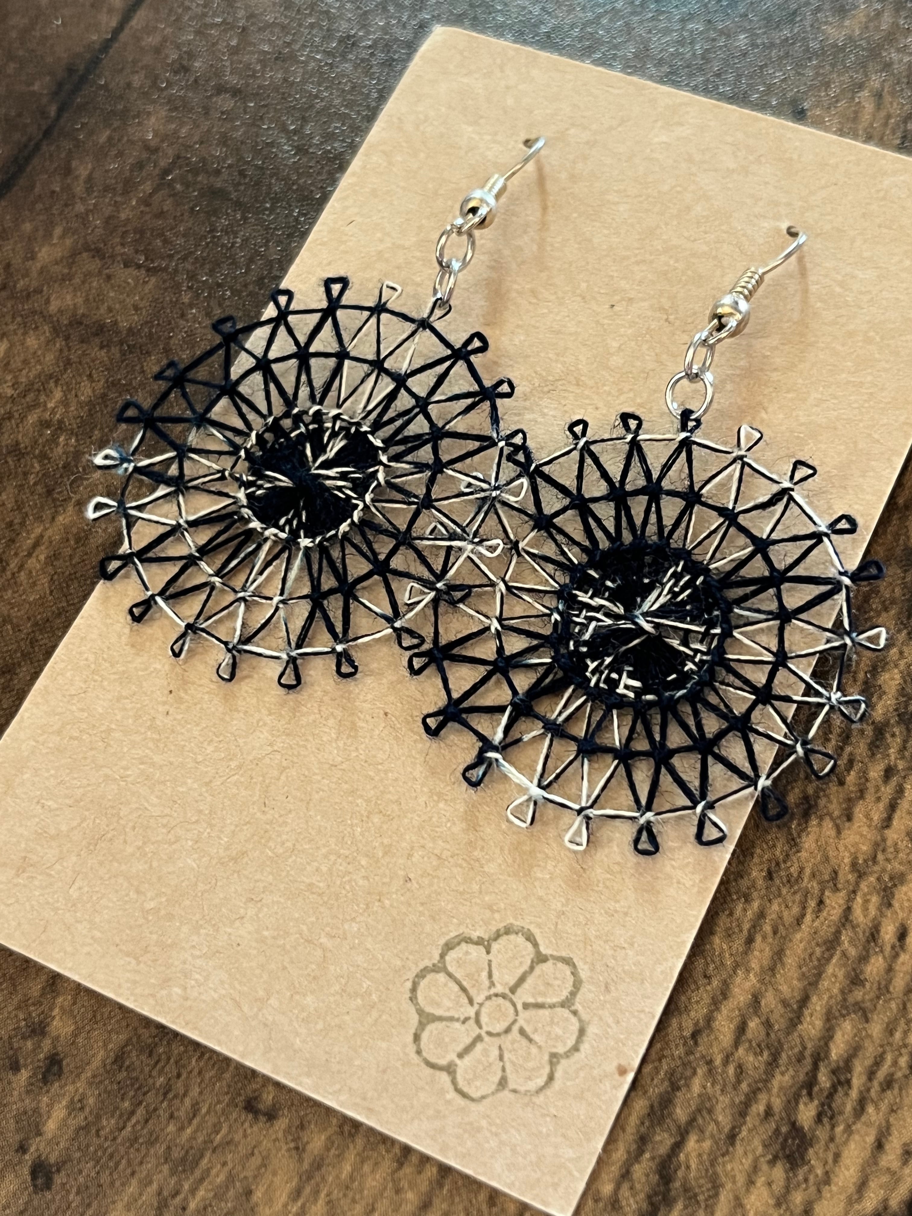 【 日本の伝統とパラグアイの融合、藍染め糸のニャンドゥティピアス 】