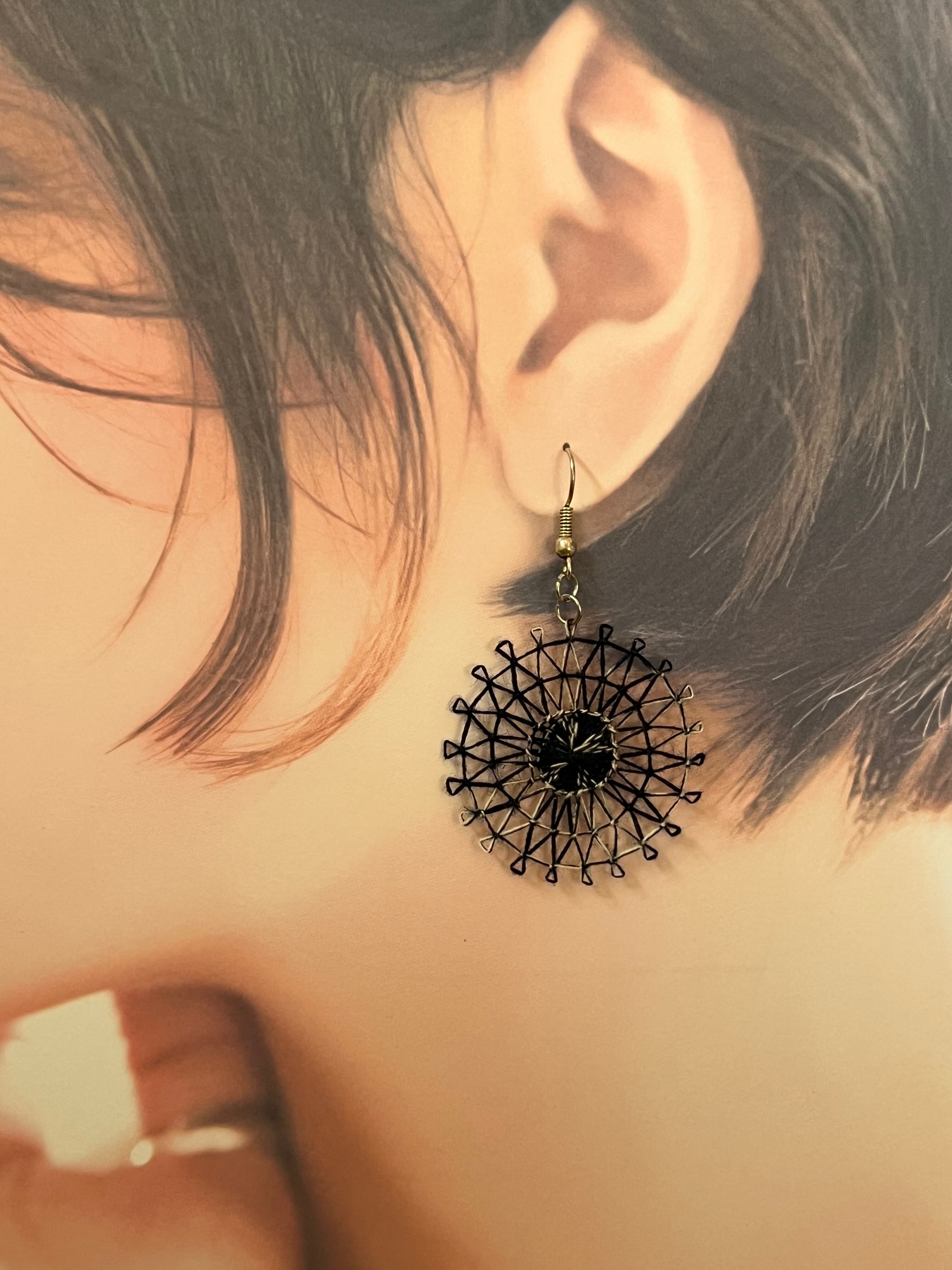 藍染め糸を使用した独自の風合いを持つニャンドゥティピアスです。美しい色合いとデザインは、耳元で優雅に揺れ、まるで日本の伝統文化とパラグアイの工芸が融合した瞬間を感じさせてくれます。