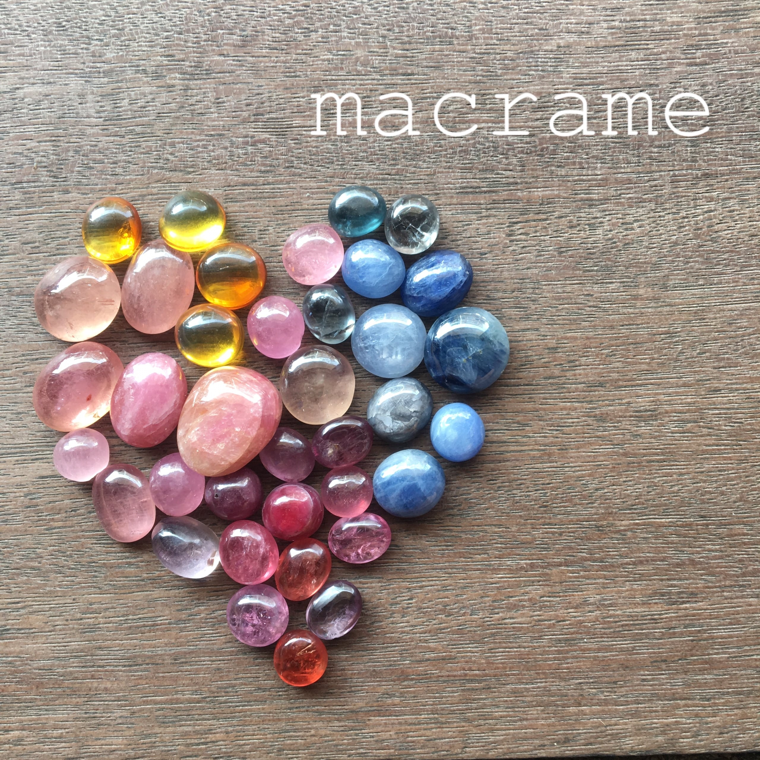 「天然石マクラメ」を基本の手法としています。ボンド等の接着剤は一切使用せず、糸のみで石留めが出来る技術です。